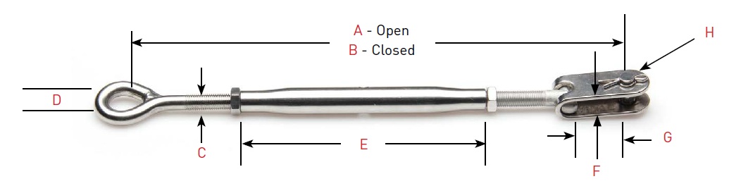 Eye-to-Jaw T-316 Tubular Turnbuckles