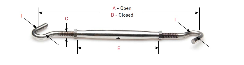 Hook-to-Jaw T-316 Tubular Turnbuckles