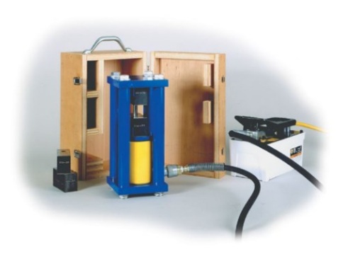 New and improved! Our popular hydraulic press swager features a user-friendly, spring-loaded die set for easy re-loading and die alignment. The included die set will swage 1/8″ and 3/16″ terminals ONLY! All that’s required is 100psi of compressed air which is coupled to an air over hydraulic foot switch. An electric pump can be used as well. Not rated for mil-spec applications or marine standing rigging. Perfect for architectural cable railings! Made in USA. (Model # HLS2)